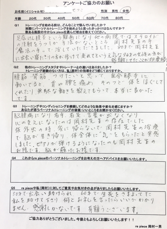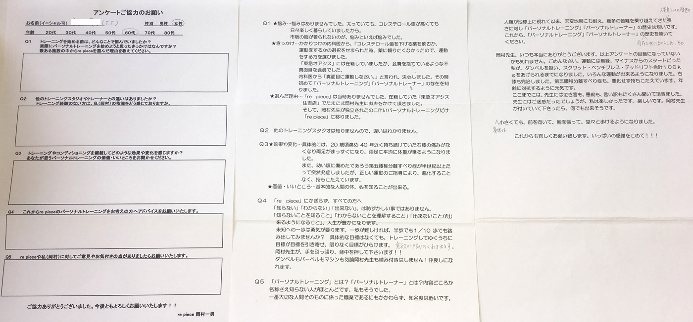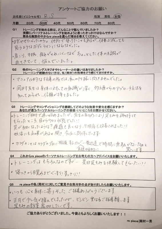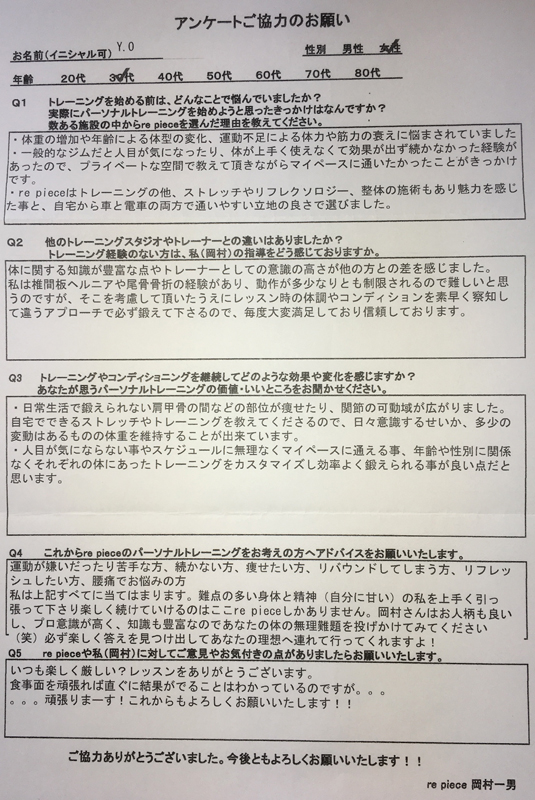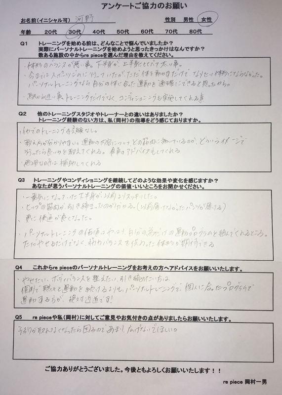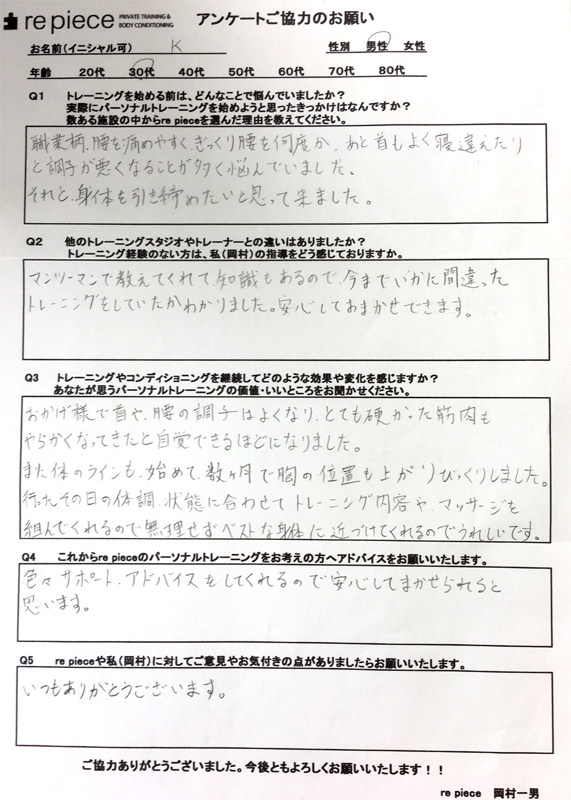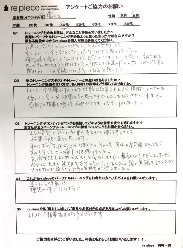 - re piece で日々肉体改造、健康維持に取り組んでいるお客様の声です。